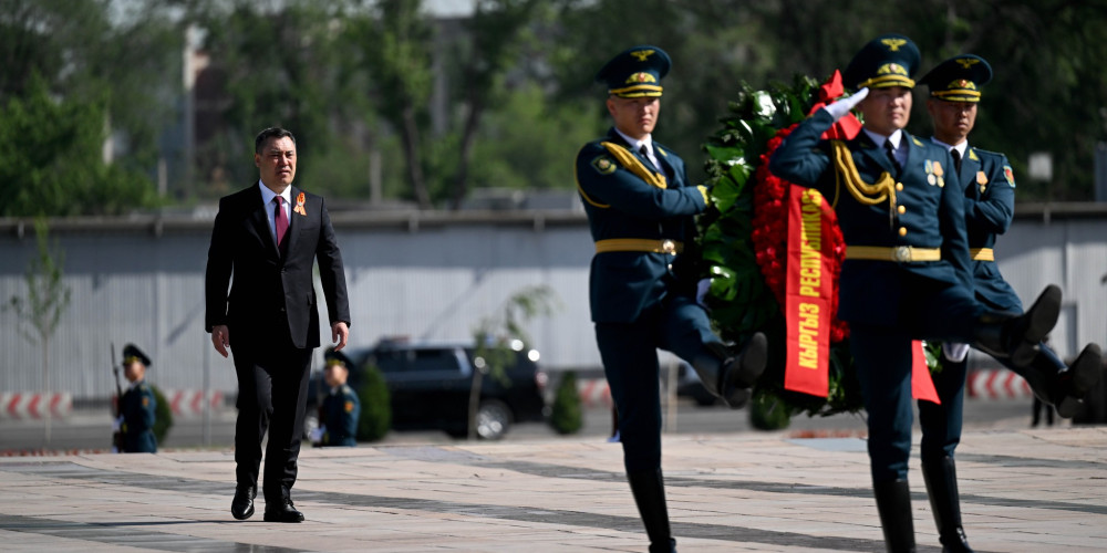 Президент — Верховный Главнокомандующий Вооружёнными Силами Кыргызской Республики Садыр Жапаров сегодня, 8 мая, принял участие в торжественных мероприятиях, приуроченных к 80-летию Победы в Великой Отечественной войне в городе Бишкек. Вначале Глава государства почтил память павших, возложив венок к Вечному огню в Парке Победы. Затем на центральной площади Ала-Тоо состоялся торжественный...