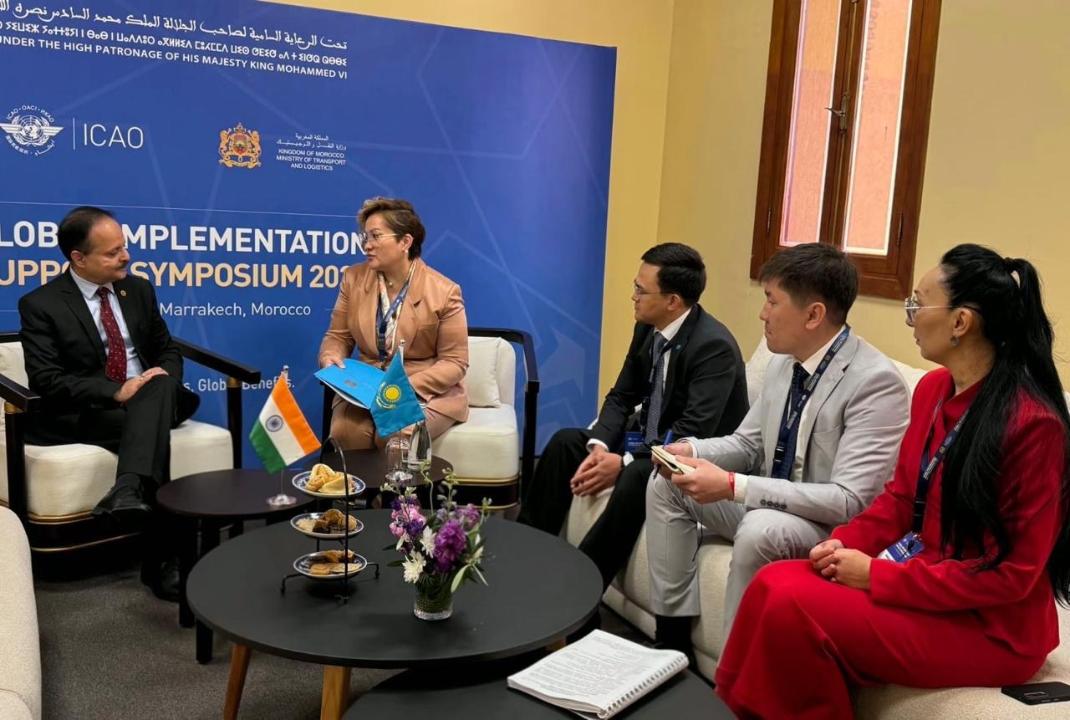 Марракеш, 20 апреля 2026г. – ИА Караван Инфо. В рамках Глобального симпозиума ИКАО по поддержке внедрения (GISS/ГИСС-2026) в Марракеше председатель Комитета гражданской авиации Казахстана Салтанат Томпиева встретилась с постоянным представителем Индии в ИКАО Ангшумали Растоги. Участие также принял постпред Казахстана в ИКАО Тимур Тлегенов.