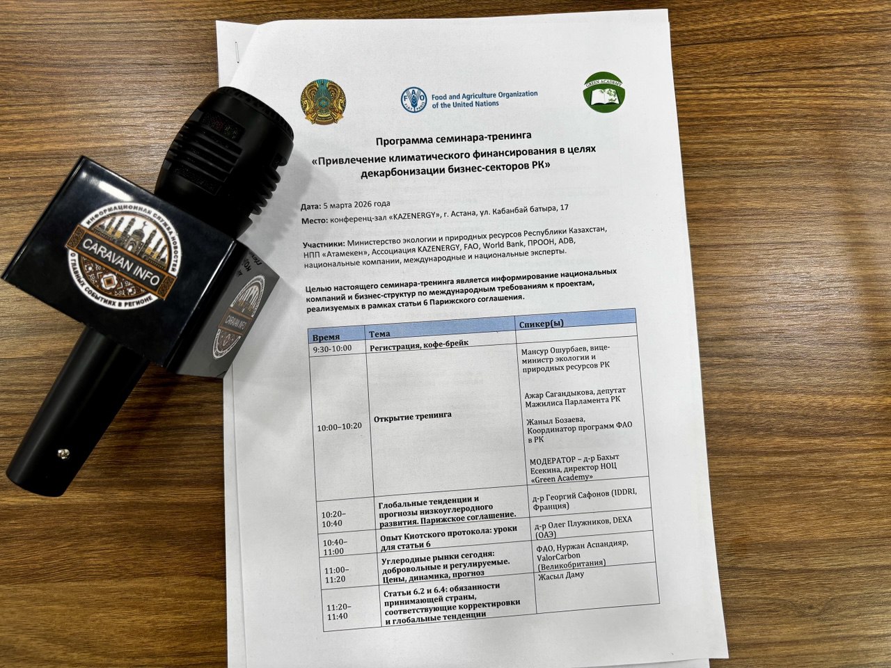 Астана, 06 марта 2026г. – ИА Караван Инфо. Научно-образовательный центр «Жасыл Академия» («Жасыл» — «зелёная», каз.) совместно с Министерством экологии и природных ресурсов Республики Казахстан и НПП «Атамекен» («Родная земля», каз.) при поддержке проекта ФАО 5–6 марта 2026 года организовали тренинг-семинар на тему «Привлечение климатического финансирования в целях декарбонизации бизнес-секторов Казахстана», с места событий передает корреспондент ИА «Караван Инфо».