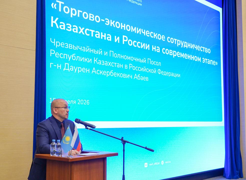 Посол Казахстана в России Даурен Абаев посетил Всероссийскую академию внешней торговли (ВАВТ) Министерства экономического развития РФ.