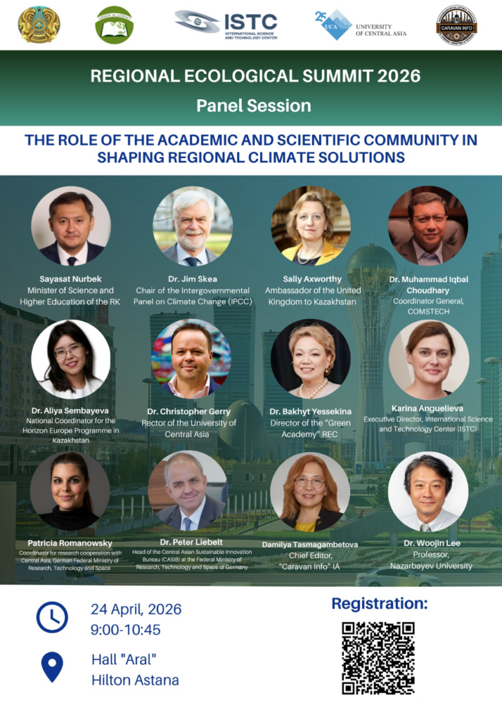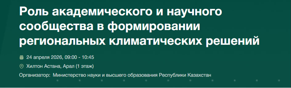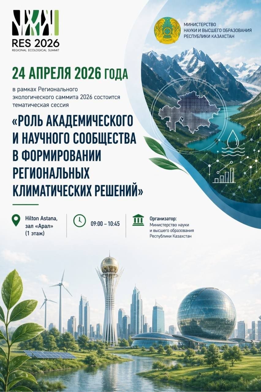 АСТАНА, 24 апреля 2026г. – ИА Караван Инфо. Сегодня в Астане в рамках Регионального экологического саммита состоится тематическая сессия, посвященная роли науки и образования в формировании климатических решений для Центральной Азии.