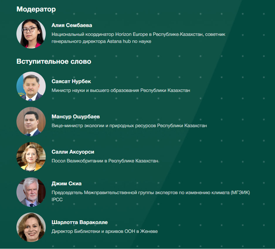 С вступительным словом к участникам обратится Министр науки и высшего образования Саясат Нурбек. Модератором сессии выступит Алия Сембаева — национальный координатор Horizon Europe(Хоризон Европа) в Казахстане.
