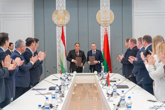 Душанбе, 24 апреля 2026г. — ИА Караван Инфо. Между Согдийской областью Таджикистана и Могилёвской областью Беларуси подписана Дорожная карта двустороннего сотрудничества на 2026–2027 годы. Документ, нацеленный на дальнейшее развитие экономических, торговых и гуманитарных связей между двумя регионами, был подписан председателем Согдийской области Раджабом Ахмадзода и председателем Могилёвского облисполкома Анатолием Исаченко.