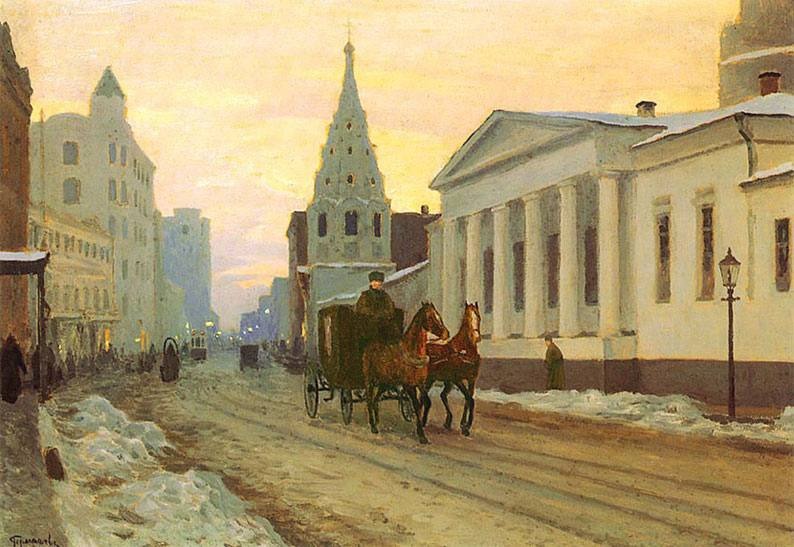 Фото: Арбат в конце XIX – начале XX века на картине М. М. Гермашева. eho-2013. livejournal (эхо-2013 лайфжорнал)