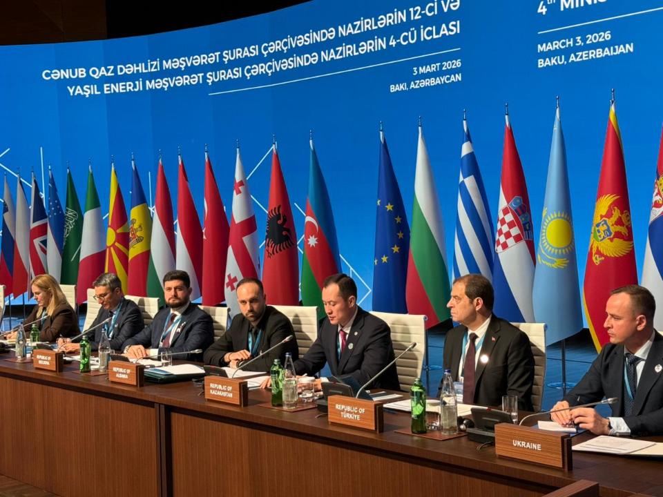 Баку, 4 марти соли 2026 АИ «Караван Инфо». Муовини вазири энергетикаи Қазоқистон Санжар Жаркешов дар ҷаласаи 12-уми вазорати шӯрои Машваратии долони гази Ҷанубӣ ва ҷаласаи 4-уми энергетикаи сабз дар Боку иштирок намуд. Дар чорабинӣ намояндагони идораҳои энергетикии зиёда аз 27 давлат ва 49 ширкати байналмилалӣ иштирок намуданд.
