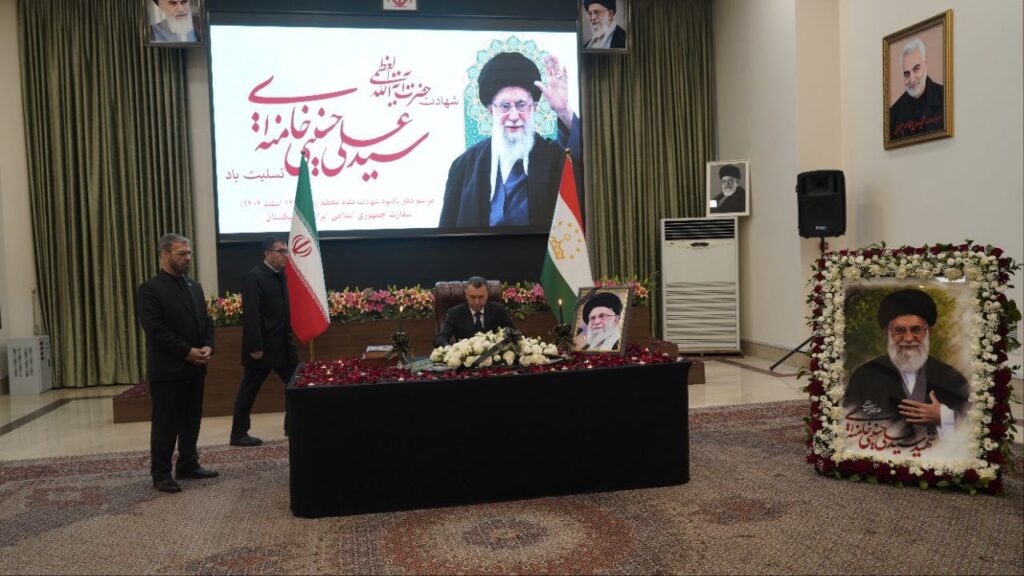 Сарвари Ҳукумати мамлакат дар Дафтари изҳори тасаллият, ки имрӯз дар намояндагии дипломатии Эрон дар пойтахти Тоҷикистон боз гардид, сабти худро гузошт.