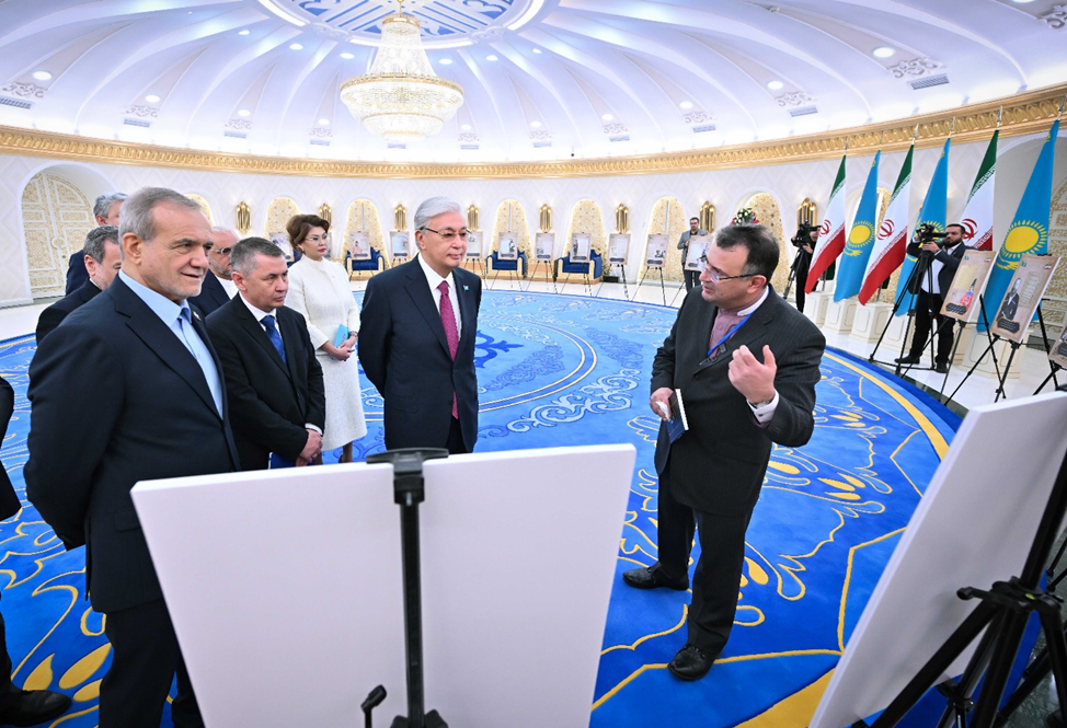 ОСТОНА, 12 декабр 2025г. – АИ «Караван Инфо». Қасим-Ҷомарт Токаев ва Масъуд Пезешкиё.н ба намоишгоҳ ташриф оварданд, ки дар он нусхаҳои 27 дастхатҳои қадимии дар бойгонии ВКХ-и Эрон пайдошуда мавҷуданд. Ин ҳуҷҷатҳо, ки бори аввал ба оммаи васеъ кушода шуданд, дар бораи рӯйдодҳои сиёсӣ ва иҷтимоӣ дар қаламрави Қазоқистон дар асрҳои XVIII-XIX маълумот доранд ва робитаҳои таърихии деринаи ду кишварро тасдиқ мекунанд.