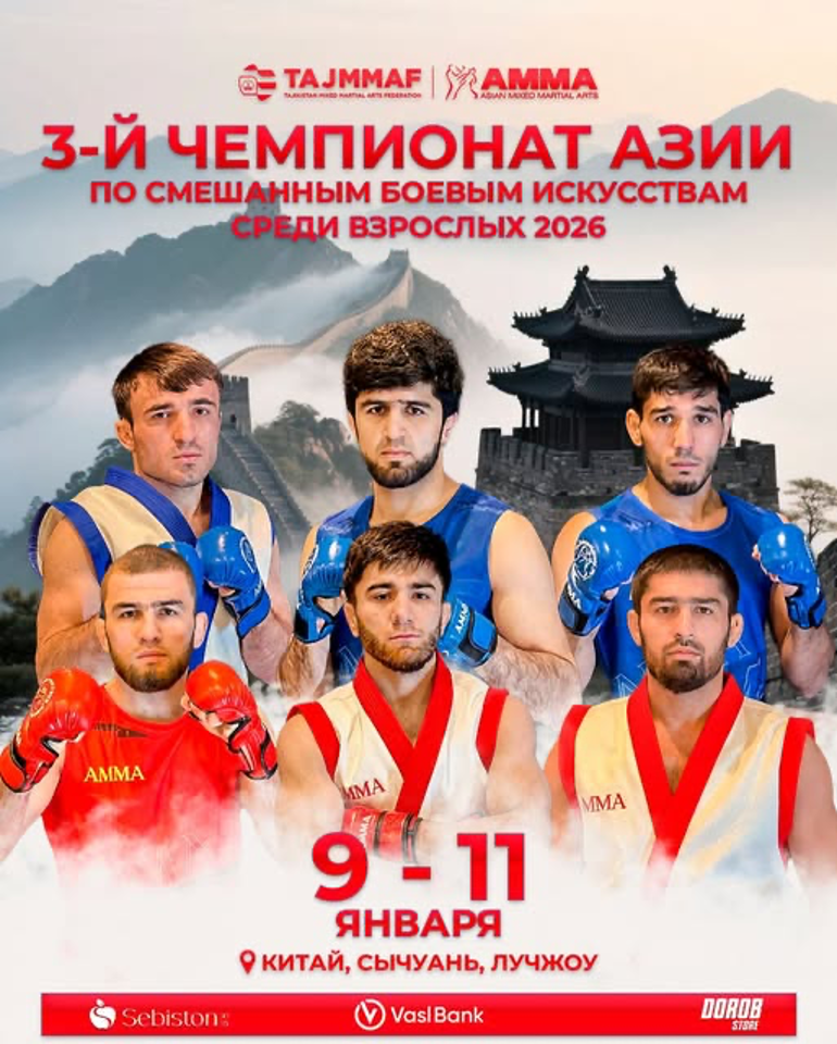 Душанбе, 09 январ, – АИ «Корвон Иттилоот». Аз 9 то 11 январ 2026 дар шаҳри Лучжоуи Чин 3-юмин Чемпионати Осиё оид ба AMMA байни калонсолон баргузор мешавад — чорабинии асосии қитъа дар ҳунарҳои омехтаи ҷангӣ.