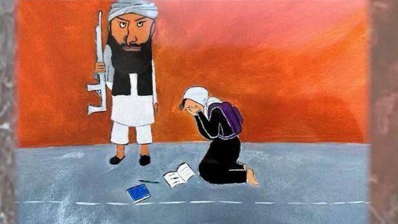 На выставке представлены работы, отражающие жизнь, мужество и надежды афганских женщин на прекращение угнетения.