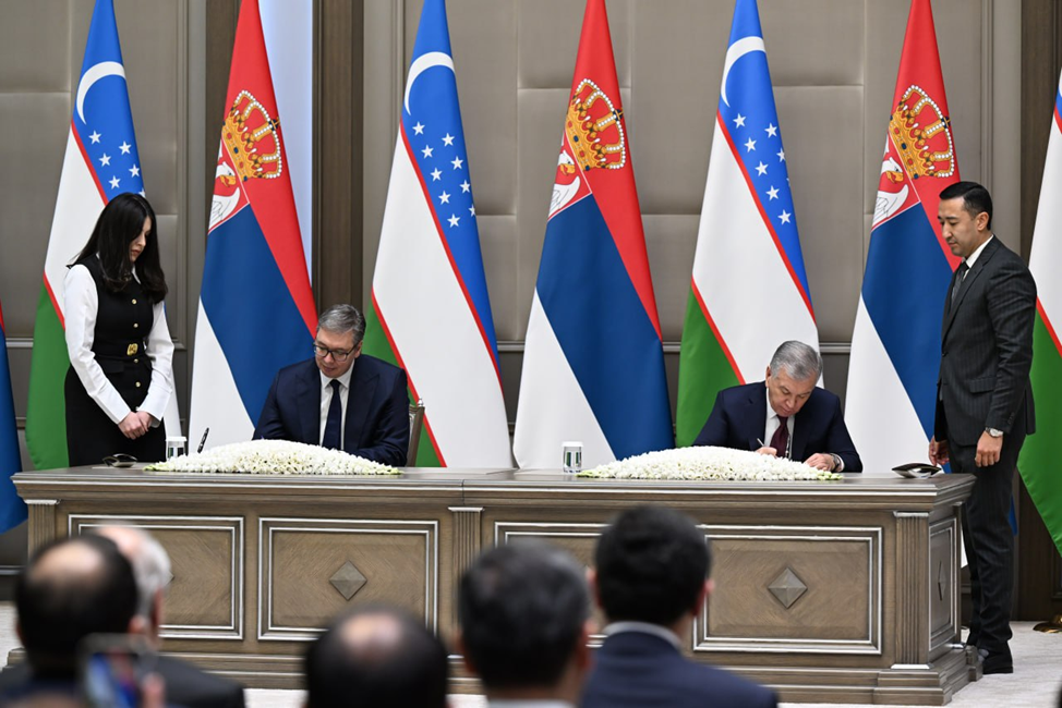 МОСКВА, 29 октября 2025г. — ИА Караван Инфо. Накануне вечером в Ташкенте президент Узбекистана Шавкат Мирзиеев и глава Сербии Александр Вучич подписали совместную декларацию и пакет из 11 межгосударственных документов, направленных на расширение сотрудничества в промышленности, технологиях, торговле и логистике. В ходе официальной встречи обсуждались ключевые направления сотрудничества: машиностроение, фармацевтика, химическая...