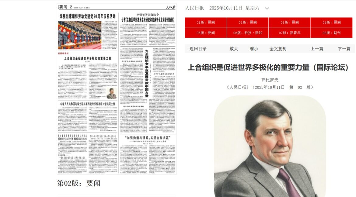 На страницах авторитетного издания Китайской Народной Республики “Jenmin Jibao” (“народная газета”) опубликована статья директора Центра народной дипломатии Шанхайской организации сотрудничества в Узбекистане Каинджона Собирова “ШОС — важная сила, продвигающая многополярный мир”. В данной статье освещается значение деятельности организации на международном уровне, ее роль в укреплении мира и стабильности, а также...