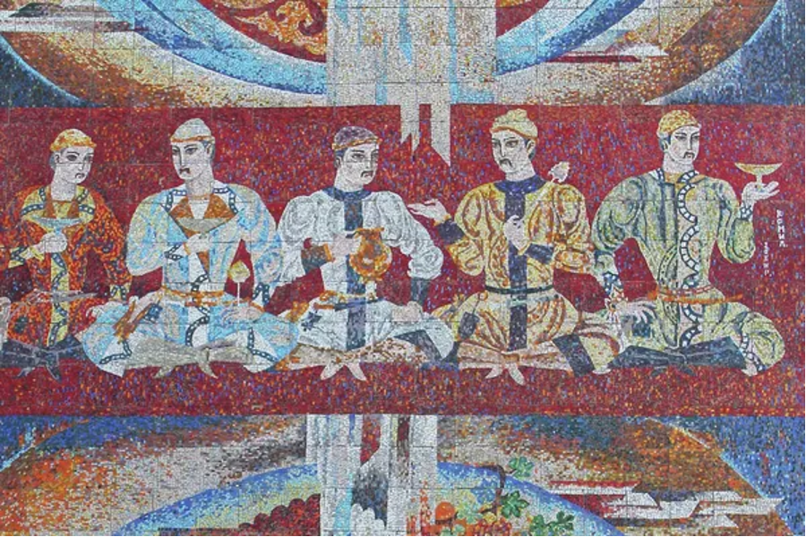 Душанбе, 09 января 2026г. — ИА Караван Инфо. Создание в Душанбе Центра арийской цивилизации и Международного центра Навруза открывает возможность не только институционального осмысления древнего наследия, но и прослеживания культурной преемственности таджикского народа через мировоззренческие коды, пережившие тысячелетия. ФОТО: Sputnik. Панно "Праздник торговцев". Мозаичная репродукция найденной в Пенджикенте фрески, которая...