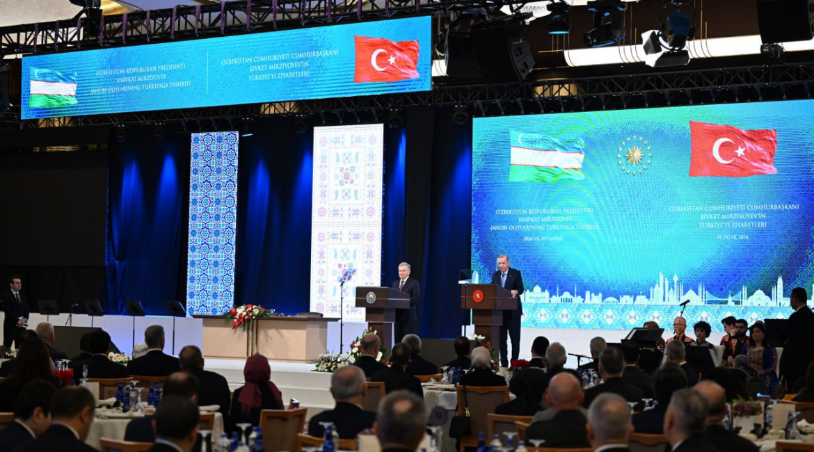ТАШКЕНТ, 30 января 2026г. - ИА Караван Инфо. Президент Узбекистана Шавкат Мирзиёев и Президент Турции Реджеп Тайип Эрдоган провели встречу в узком формате в Президентском дворце Анкары. В начале беседы лидеры обменялись поздравлениями с наступающим месяцем Рамазан. На встрече обсуждались перспективы развития двусторонних отношений в рамках всеобъемлющего стратегического партнёрства. Основное...