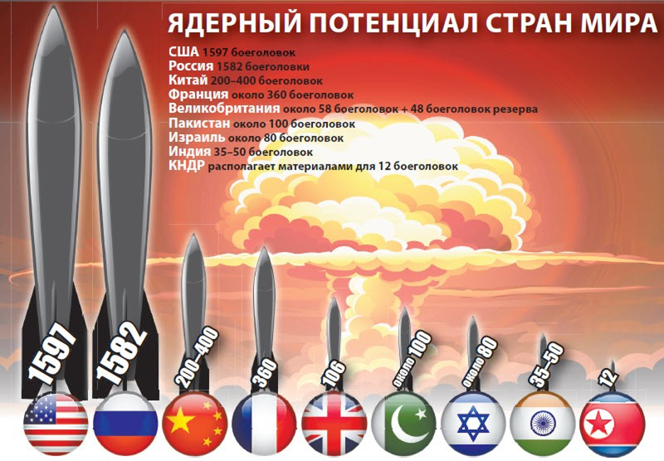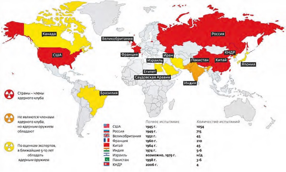 Сегодня официально в ядерном клубе девять стран: Россия, США, Китай, Франция, Великобритания, Индия, Пакистан, Израиль и Северная Корея.