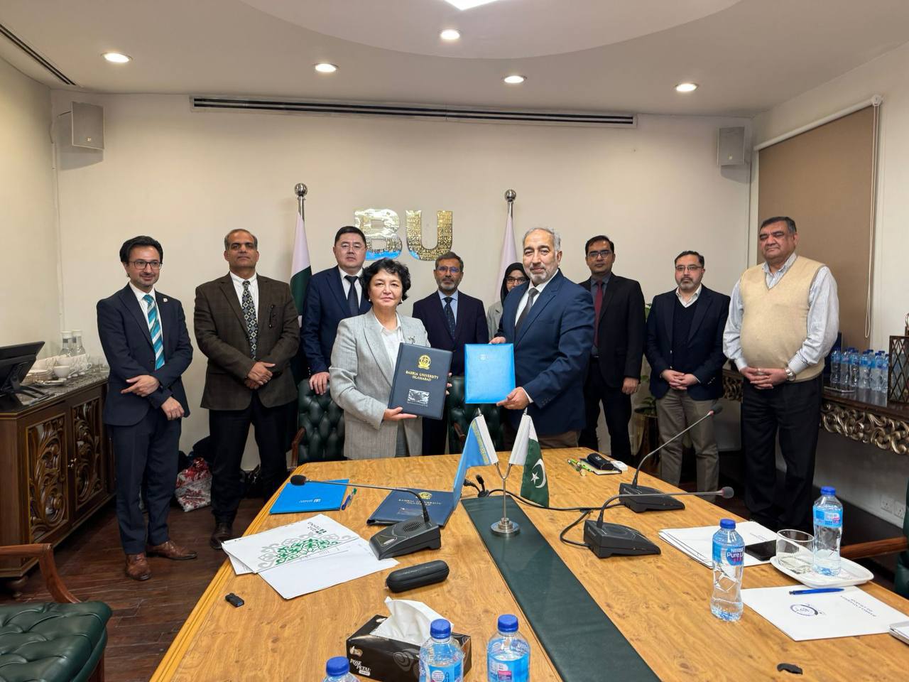 Марказҳои Ал-Форобӣ, Каниш Сатбоев ва Хоҷа Аҳмад Ясавӣ, ки тавассути шарикии донишгоҳҳои пешбари ду кишвар таъсис дода шудаанд, дар пойтахти Покистон кушода шуданд. Маркази Ал-Форобӣ, ки аз ҷониби Донишгоҳи миллии Қазоқистон ба номи Ал-Форобӣ ва Донишгоҳи Қоид-и Аъзам муштарак кушода шудааст, бо технологияи муосир ва адабиёти таълимӣ муҷаҳҳаз аст; он нақша дорад, ки курсҳои забони қазоқӣ пешниҳод кунад. Маркази Каниш Сатбоев ҳамкориро дар соҳаҳои илм, маориф ва технология байни Донишгоҳи Сатбоев ва Донишгоҳи миллии илм ва технологияи Покистон рушд медиҳад. Маркази Хоҷа Аҳмад Ясавӣ дар доираи ҳамкории Донишгоҳи байналмилалии Қазоқистону Туркия ва Донишгоҳи байналмилалии исломии Исломобод таъсис дода шудааст.